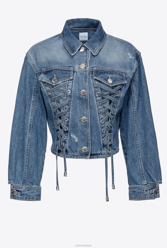 Pinko veste en jean avec laçage B244D817 vestes décontractées | délavage vintage moyen