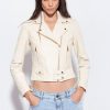 veste style motard en cuir nappa, avec boutons métalliques au niveau du cou. poches avec zip en métal, pattes avec bouton aux poignets et manches avec zip et patte au bout. doublure en tissu et quincaillerie dorée. fermeture zippée asymétrique. ce vêtement est fabriqué à partir de matériaux provenant de tanneries qui favorisent une fabrication respectueuse de l’environnement et des pratiques commerciales durables. – le mannequin mesure 178 cm et porte une taille 40.