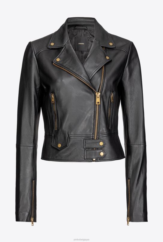 Pinko veste motard en cuir nappa B244D841 vestes décontractées | limousine noire