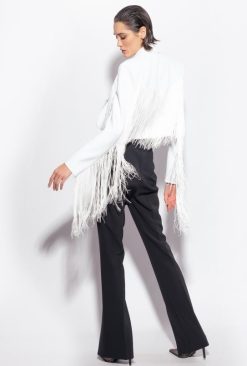 Pinko veste spencer avec longues franges B244D598 vestes décontractées | blanc cassé